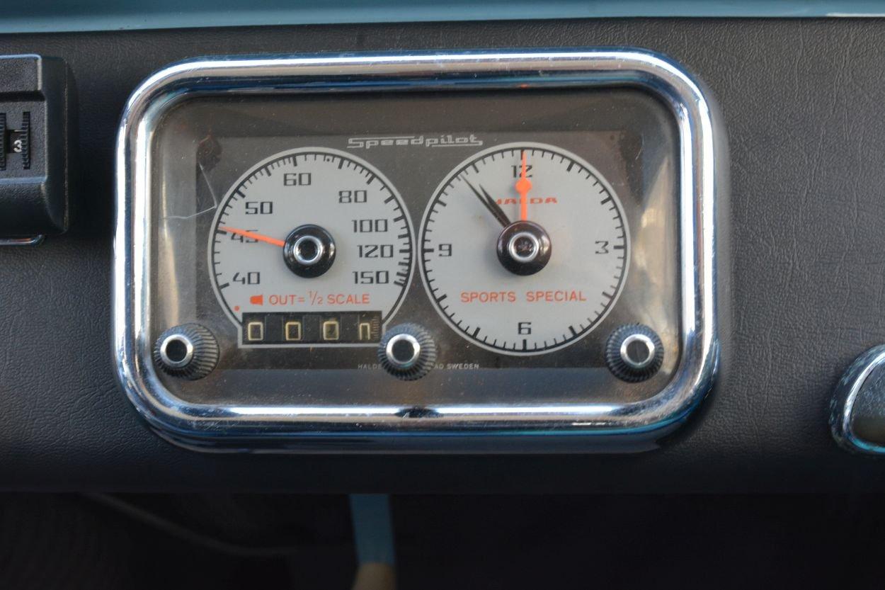 Sport dashboard met km-teller, toerenteller en Halda speed pilot.