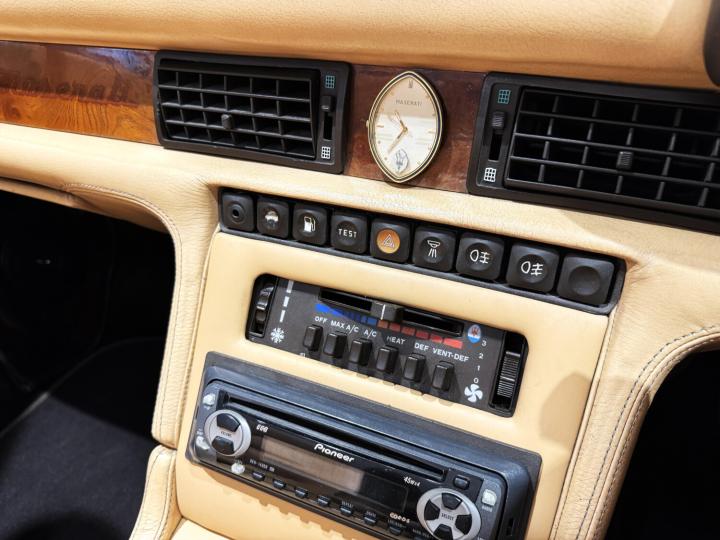 This particular example was first registered in January 1989, although the chassis number dates its manufacture to 1987; a fairly common anomaly for slow-selling exotica. In fact, in order to further boost sales, Maserati GB announced a special edition ‘SE’ version. This was not an official factory term as the modifications were done in the UK, but included a Zender bodykit of uprated bumpers, side skirts and boot lid spoiler, OZ 15” multi-spoke wheels to replace the original 14” plain alloys, a MOMO steering wheel and sometimes MOMO gear knob. Very often, the lower halves of the body were painted in a contrasting colour to give a two-tone effect. Judging by the MOT history, this car had this treatment, for while it is an original silver car, previous MOT testers refer to it having been silver/blue.