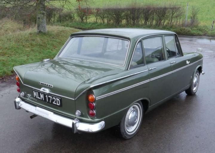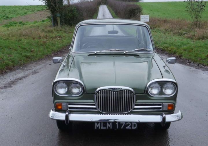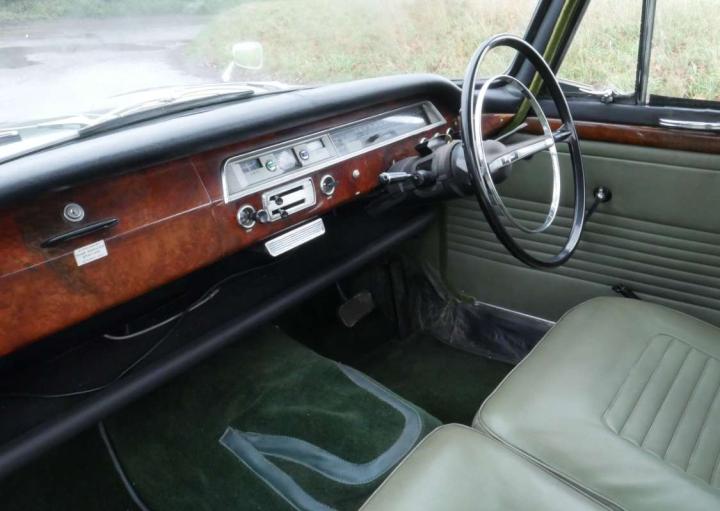 Lovely example in metallic green with matching interior, bodywork, paint and chrome are all excellent as is the interior, green carpets look quite new, wooden dash and door cappings are very good. Starts easily and runs well with light steering, a smooth automatic change and good brakes. Fitted with electronic ignition, very good Whitewall tyres, documented speedo change, old one (with car) reads 61,764, current one fitted reads 2,555 making a probably mileage of just over 64,000 miles. Comes with original green logbook, V5 and a little history, Owner’s Handbook, tools and a few spares.