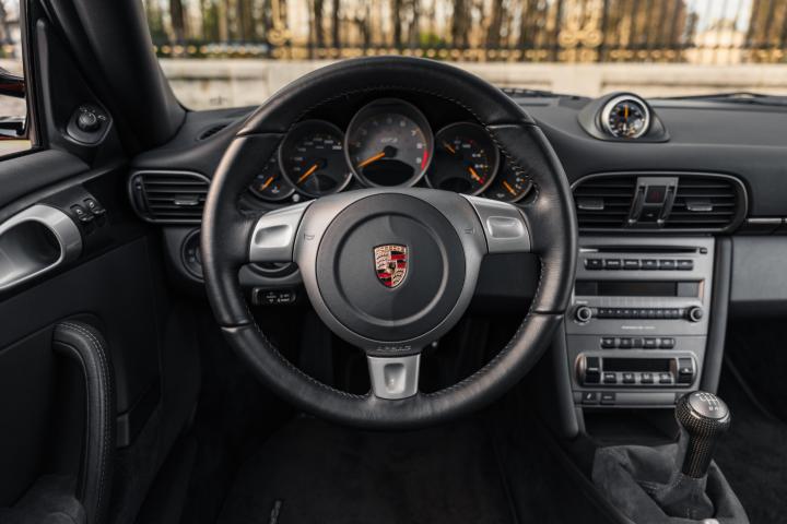 Sous le capot, la 997 GT3 RS MK1 est animée par un flat-six atmosphérique 3.6 litres développant 415 ch à 7 600 tr/min et un couple de 405 Nm à 5 500 tr/min. Grâce à son poids contenu à 1 375 kg, elle atteint 100 km/h en 4,2 secondes pour une vitesse maximale établie à 310 km/h. La boîte manuelle à six rapports courts et le châssis affûté avec amortisseurs PASM spécifiques offrent une précision de conduite redoutable. Son comportement dynamique et son ADN issu du sport automobile en font une référence parmi les sportives de l’époque, à la fois sur route et sur circuit.