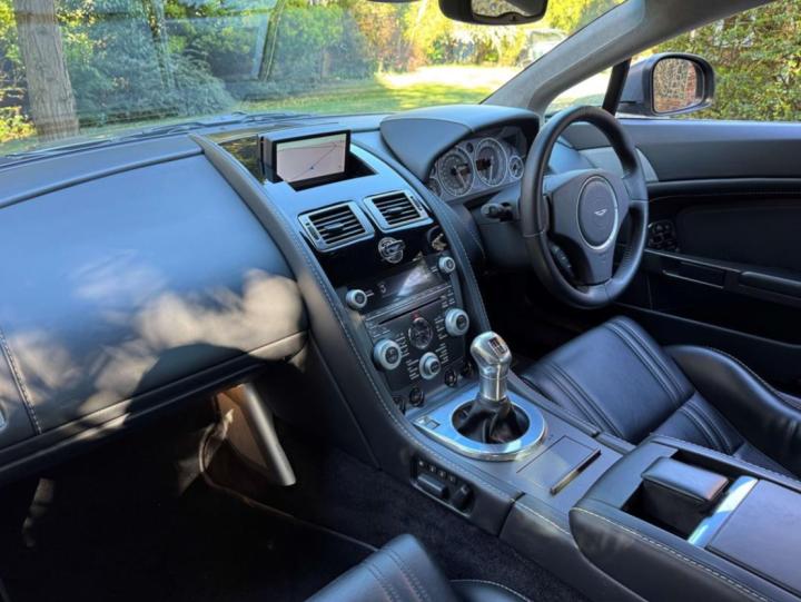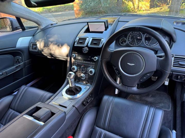 This 2009 Aston Martin V12 Vantage is beautifully finished in Hammerhead Silver with Carbon fibre, Obsidian Black, Lightweight Leather Seats with silver stitching and built with the all-important manual 6 speed transmission. Built in December 2009, it is a 2010 model year car, complete with glass key and redesigned dashboard layout. It has only covered a mere 29,600 miles and is supplied a well stamped up service book. Due to the personal circumstances of the owner, it has had very little use since he purchased the car back in 2019 and the mileage in the past six years has amounted to only 3,500 miles. It comes with a fully detailed Aston Martin build sheet which lists a Bang & Olufsen Beosound Hifi system, Piano Black facia trim, bright finish front grille, front and rear parking sensors and 10 spoke Graphite DT wheels. The whole car is in fabulous condition and is an exhilarating car to drive. Not expensive for such a low mileage example in this condition at £67,500