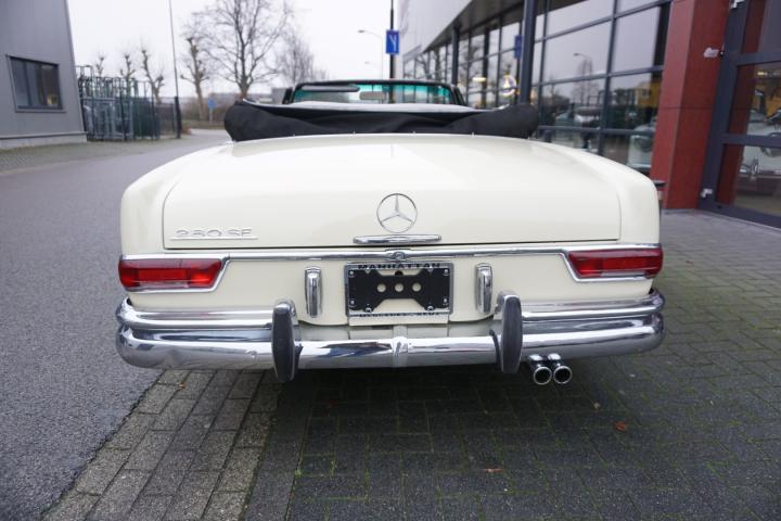 Best een mooie auto deze 280SE hoge grille Cabriolet, de prijs/kwaliteit verhouding in in orde, loopt en rijdt goed en zal technisch weinig tot geen werk met zich meebrengen, in het verleden heeft deze 280SE een nieuw onderblok af fabriek gekregen, de juiste 130980 motor, qua lakwerk goed, mooi strak en geen deuken of krassen, het chroomwerk is netjes met de juiste pasvorm, de Amerikaanse bumper-rozetten voor en achter is persoonlijk, leder interieur is nog volledig het eerste originele af fabriek, de body is origineel, droog en goed, auto heeft geen laswerk gehad in het verleden, kortom een leuke auto met een uitdagende prijs voor een 280SE W111025 Cabriolet af fabriek.
